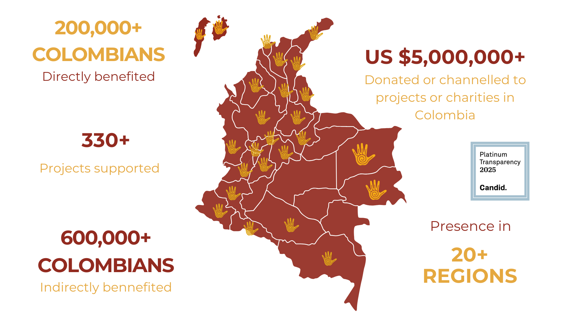 We serve as a resource for Colombian residents, expats, and anyone motivated to support vulnerable communities in Colombia. Our mission is to provide donors with the tools, projects, and inspiration to contribute to Colombia’s transformation.